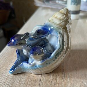 VINTAGE | Dolphins Blue Iridescent Shell Lusterware Nautical Ceramic Figurine