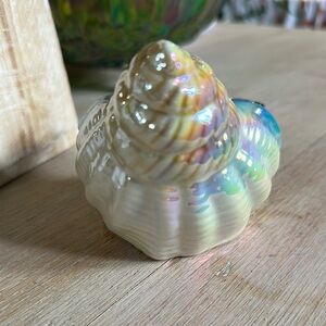 Add a touch of elegance to your home with this iridescent shell figurine. Its shimmering blue and cream hues create a captivating display. Excellent condition from smoke free environment ✨