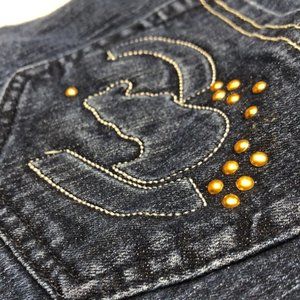 2989 EU28/US34 see pictures !! PREMIUM VINTAGE DESIGNER DENIM rare ramie blend similar to linen !! DECORATIVE EMBROIDERY ON POCKETS with studs !! EMBROIDERED LOGO !! FOUR POCKET STYLE !! CONTRASTED DOUBLE STITCHING !! NOT ALTERED !! 8” MIDRISE !! DESIGNER QUALITY with TRENDING fit and style ⭐️