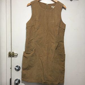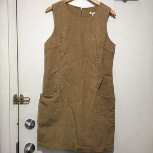 Eddie Bauer Midi Sleeveless Corduroy Dress, Lightweight Size 8, Color Tan, 100% Cotton, Front Pockets, Closure Back Zipper, Good Condition, Casual Dress, Great Look, Great Fitting.