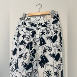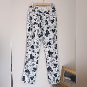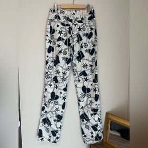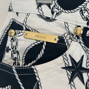 Escada jeans in size 36 (size 26-28” waist) feature a striking black and white print that will elevate any outfit. The regular fit and style, as per photo, make them versatile for both casual and formal occasions.