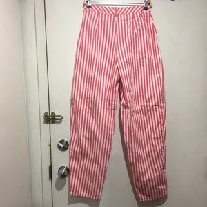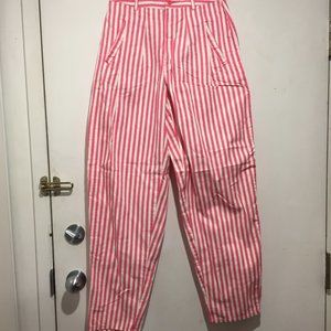 Esprit High Waist Pant, Lightweight Size 28, Color Pink, White Stripe, 100% Cotton Baumwolle, Pleated, Side Pockets, Closure Zipper, Button, Musty Smell but in Good Condition, Beautiful Pant, Great Look, Great Fitting.