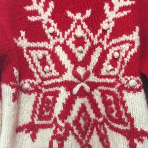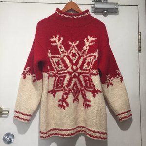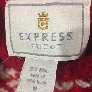 Express Tricot Turtleneck Sweater, Knitting Patterns, Size M, Color Red, Cream, 100% Wool, Closure Pullover, Good Condition, Cozy Chunky Sweater for Winter, Great Look, Great Fit.