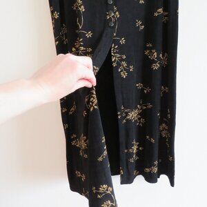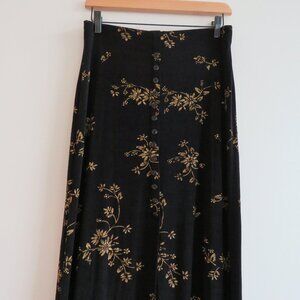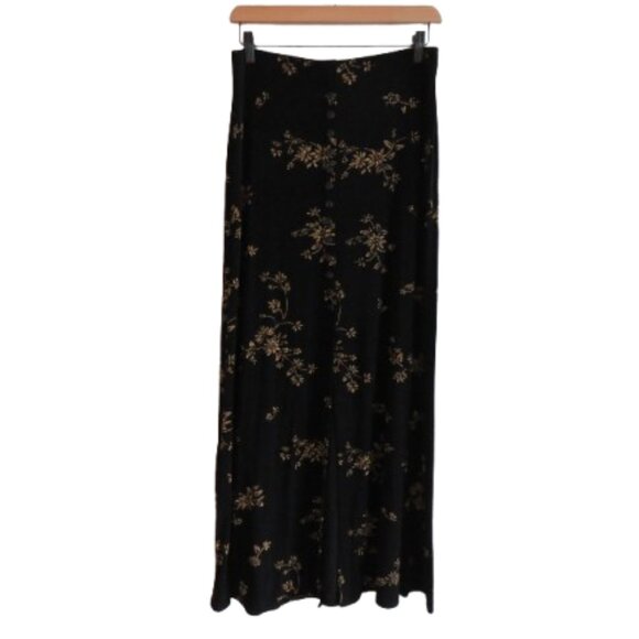 VINTAGE EZ TOWN USA Y2K Black Gold Floral Button Front Stretch Maxi Skirt Whimsigoth - Size L