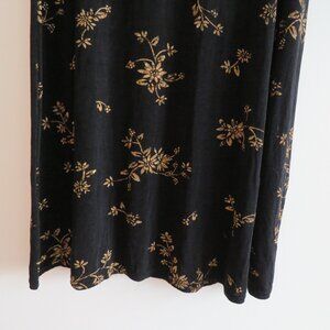 VINTAGE EZ TOWN Y2K Black Gold Floral Stretch Maxi Skirt Friends Whimsigoth Goth