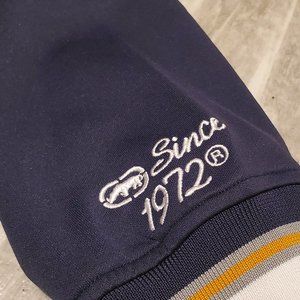 Hate to let this go but I never really wore it. This shirt is EUC and is about 25 years old, Vintage Ecko. Size medium but fits a bit big. Very stylish with beautiful navy, gold, white and silver color scheme. Zipper work great with 2 front pockets, Open to offers ๐ ๐