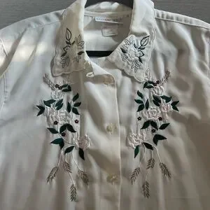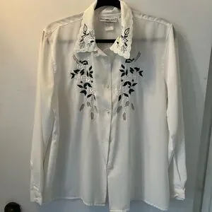 - Vintage embroidered white button up shirt
