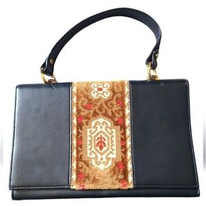 Embroidered tapestry inlay that wraps around the bag to give it that unique detail. A really beautiful bag.