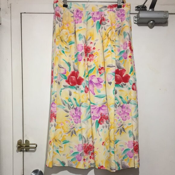 VINTAGE FLORAL PRINT SILK SKIRTS SIZE 14