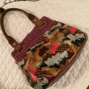 VINTAGE FOSSIL KEY-PER COLORFUL COATED CANVAS SHOULDER BAG