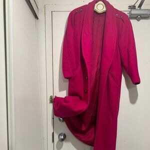 Fox Run Wool Coat, No Fabric/Size Tag, Color Pink, Wool Textured, Lined, Side Pockets, Shoulder Buttons, Closure Double Breast Buttons, Front Collar Small Fabric Damaged, Lining Dark Spot, in Good Condition, Trench Coat, Great Look, Great Fit.