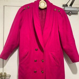 FoxRun Wool Coat, No Fabric/Size Tag, Color Pink, Wool Textured, Lined, Side Pockets, Shoulder Buttons, Closure: Double Breast Buttons, Front Collar Small Fabric Damaged, Lining Dark Spot, in Good Condition, Trench Coat, Great Look, Great Fit.