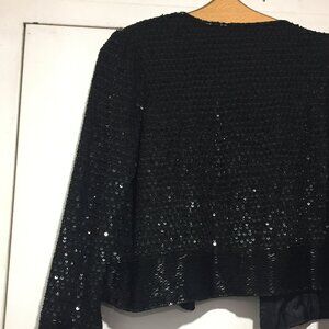Frank Usher Formal Sequin Jacket, Lightweight Size 8, Color Black, Sequin Black, 100% Silk, Lined, Shoulder Pad, Closure Small Hooks, Good Condition, Relaxed Fit, Great Look, Great Fit.