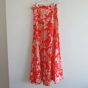 VINTAGE FRITZI OF CALIFORNIA Hawaiian Floral Maxi Skirt in Orange White Sz XS