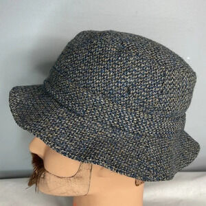 Mens Vintage blues and tan mixed Tweed Pure new wool bucket hat.