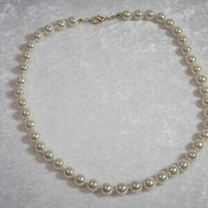 VINTAGE Faux Pearl Single Strand Knotted Necklace 17" long