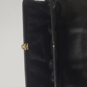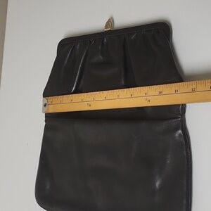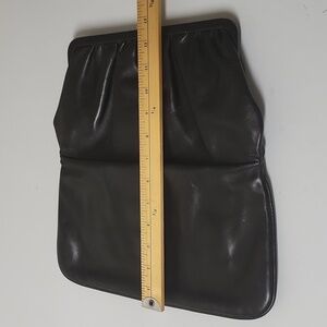Vintage black Leather foldable Clutch/ppurse with black suede interior. Great for date nights, award nights and wedding guest essentials.