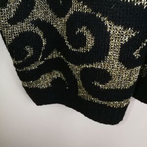 VINTAGE French Y2K 80s Black & Gold Arabesque Knitted Scoop Neck Sweater Large