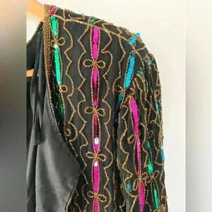 VINTAGE Fully Beaded Open Front Blazer on Silk