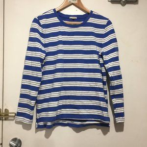Gap Striped Print Sweater, Size S, Color Blue, White, 100% Cotton, Sides Small Split, Crewneck Pullover, Good Condition, Brand New, Great Sweater, Great Look, Great Fitting.