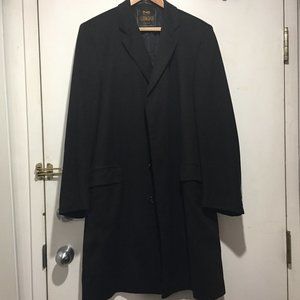 Chester Barrie Tailored in Great Britain for Harry Rosen Toronto, No Label Material, Material felt soft like Cashmere, Lining, Front Pockets, Inside Pockets, Back Split, Closure Buttons, Left Pocket Small Pulling, Loose Button, but in Good Condition, is a Beautiful Coat, Great Look, Great Fitting.