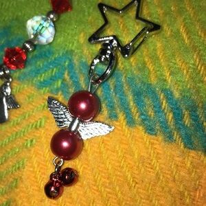 ❤️ Cute keychain with star clasp, angel wings and lil red bells.