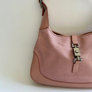 VINTAGE GUCCI JACKIE 1961 PINK CANVAS LEATHER SHOULDER BAG