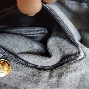 Flap closure with cinch opening on top. Interior has been cleaned. So now it's only the cloth. there's still some small amount of pieces left but nothing crazy. Interior has a zipper pocket with bright gold Gucci zipper tab.