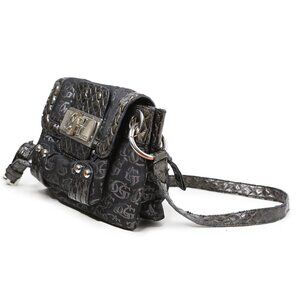 Step back in time with this authentic vintage GUESS monogram fabric shoulder bag from the iconic Y2K era! This charming black bag features the classic "G" logo pattern throughout, accented with stylish faux crocodile/faux snake leather trim and a prominent Guess logo silver-tone hardware closure. Perfect for adding a nostalgic, trendy touch to your outfit. It's a fantastic find for collectors of Y2K accessories or anyone looking to embrace the retro aesthetic.