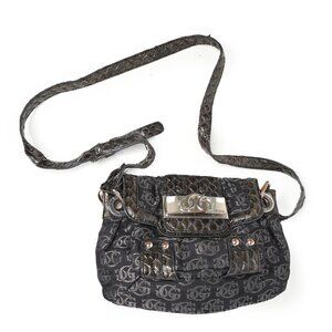 VINTAGE GUESS Monogram Shoulder Bag Y2K Era Black Logo Fabric Faux Croc Purse