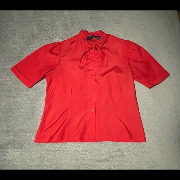 VINTAGE Givenchy 1970s cat bow blouse size 9/10 red very good condition