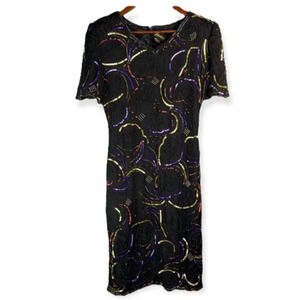 Ladies stunning vintage Glamour beaded and sequinned 100% silk cocktail dress.