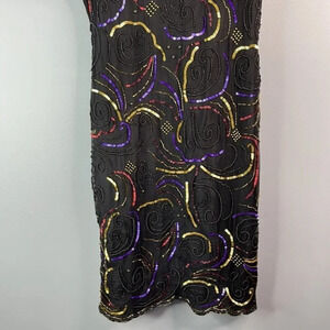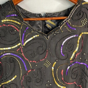 VINTAGE Glamour Silk Sequinned Beaded Dress Black Cocktail Shoulder Pads Size S