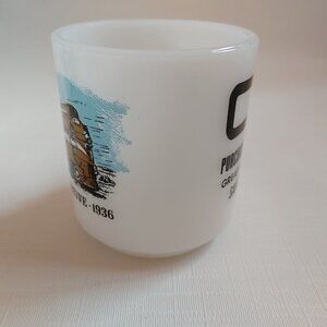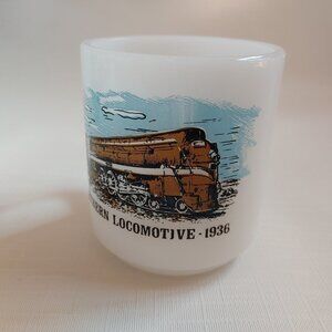 VINTAGE Glasbake Milk Glass Mug CN RAIL Purchases and Stores Great Lakes Region Northern Locomotive 1936