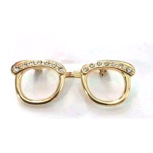 VINTAGE Gold Tone Rhinestone Glasses Brooch Pin Reading Eyewear Sun Protection