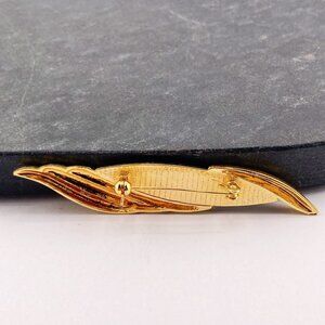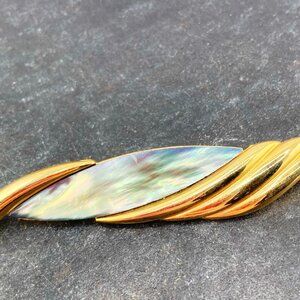 VINTAGE Gold tone metal and genuine abalone shell wavy shaped bar brooch pin