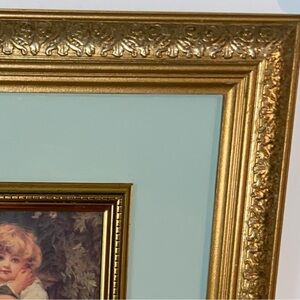 VINTAGE Gold wood framed ART print Fred Morgan “OVER THE GARDEN WALL” pears soap