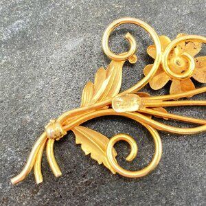 Sweetness and beauty collide in this lightweight, charmingly lovely mid-century vintage gold-filled flower brooch.