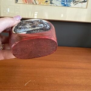 VINTAGE HAND PAINTED WOLF CARVING RESIN RED BOTTLE Vase COLLECTIBLE