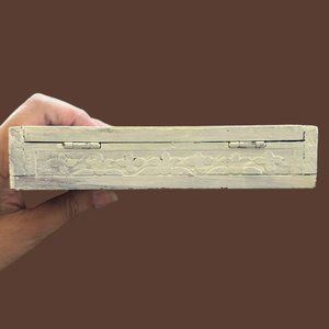 Painted white with floral engraving on top cover and sides