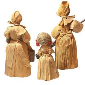 VINTAGE HANDMADE CORNHUSK MOM & DAUGHTERS WORKING AT THE FARM