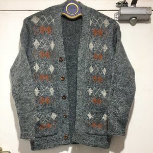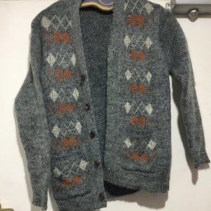 Harries Unisex Knitted Sweater Cardigan, Size M but Fits Size S, Color Grey, Multicolor Knit Pattern, Best Quality 100% Wool, Front Pockets, Closure Button Down, Good Condition, Beautiful Cardigan, Great Look, Great Fitting.