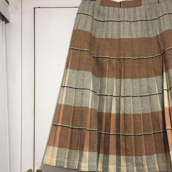 Highland Queen Wool Skirt, Lightweight Size 14, Waist Size 28, Multicolor Plaid, 100% Wool, Reversible, Pleated, Embroidered, Closure Side Zipper, Buttons, There are a few Holes and Spots, in Good Condition, Made in Canada, Midi Skirt, Great Look, Great Fit.