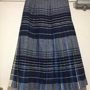 Highland Queen Midi Pleated Skirts, Size 10, Waist Size 25, Color Reversible Blue Plaid, Pure Virgin Wool, Closure Side Zipper, Buttons, Good Condition, Made in Canada, Great Skirts, Great Look, Great Fit.