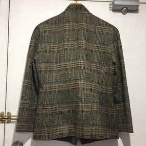 Hucke Unisex Double Breast Jacket, Lightweight Size 44, Multicolor, 88% Virgin Wool, 8% Viscose, 4% Silk, Lining, Breast Pocket, Front Pockets, Shoulder Pads, Puff Sleeves, Closure Buttons, Lining Small Rip but in Good Condition, Made in West Germany, Beautiful Jacket, Great Look, Great Fitting.