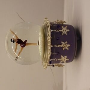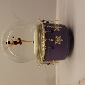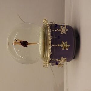 This lovely 2002 Salt Lake City Musical Water Globe with Purple Platform and Snow Flakes/hearts is in good condition. Metal trim loose on one side. See photos.