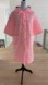 Vintage pink quilted housecoat by Hamilton Lingerie.  Lace trim around collar and on front.  Patch pockets.  Button front with a tie at the top. 100% acetate exterior, 100% polyester lining, 100% nylon interior. Tags describing the polyester fill included. Made in Canada.