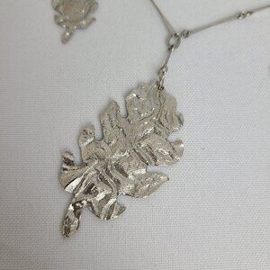 VINTAGE Hammered Leaf Pendant Charm Link Necklace