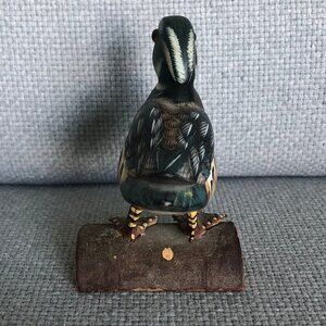 VINTAGE Hand Painted Wood Duck On Small Log 4 x 3 inches
