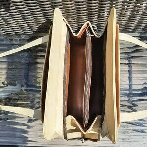 VINTAGE Hand Tooled Mexican Leather Purse Handbag Tan Floral 11" x 8" x 5"